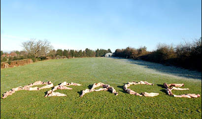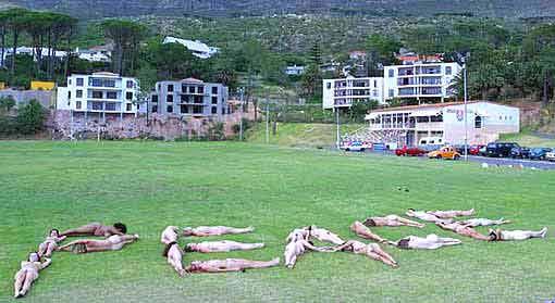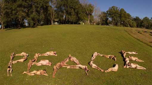 clothes and spell the words "FREE LOVE" with your naked bodies right