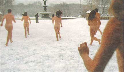 It's never too cold for a nude antiwar romp. You might think handing out business cards would be sufficient, but you would be wrong.